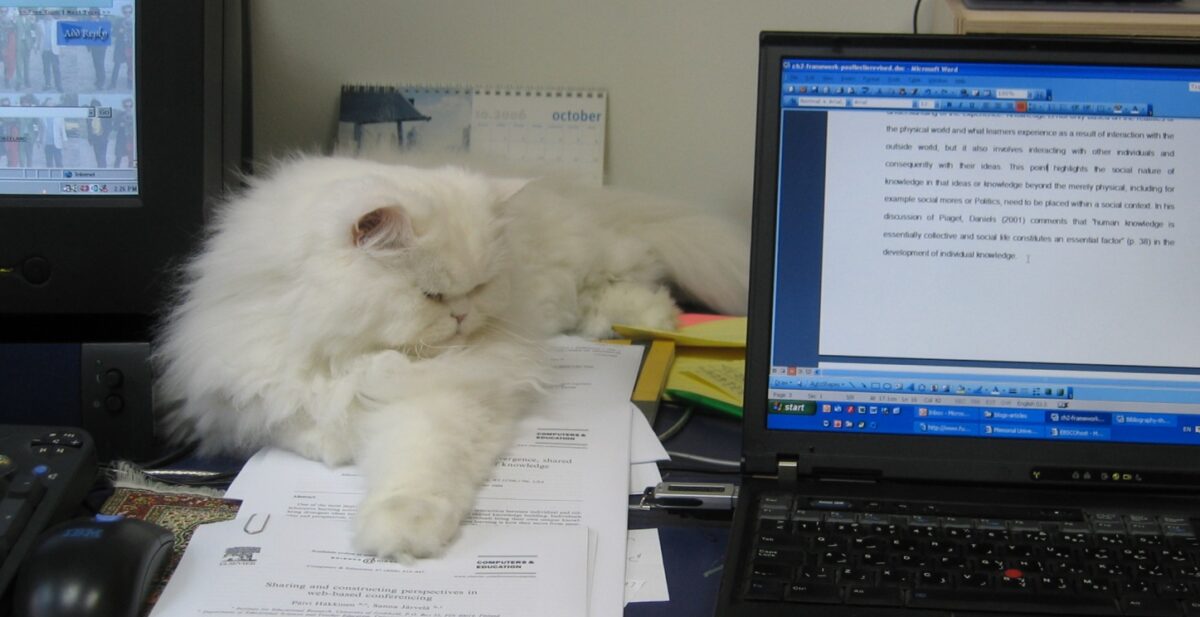 Bella has taken to jumping up on my desk and keeping me company. She provides a certain sense of comfort and motivation.